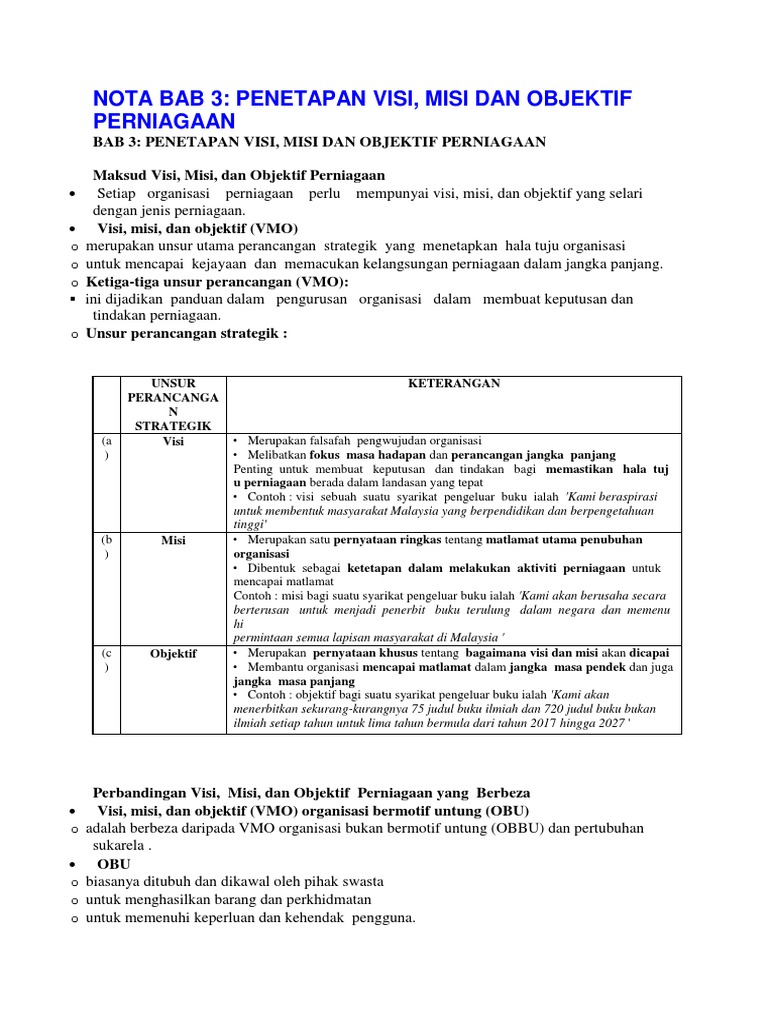 Bab 3 Penetapan Visi Misi Dan Objektif Perniagaan Membalik Buku Halaman 1 6 Anyflip